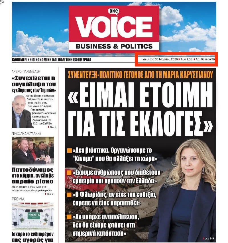 Η σημερινή ανακοίνωση της δημιουργίας πολιτικού φορέα από τη Μαρία Καρυστιανού δεν αποτέλεσε κεραυνό εν αιθρία για όλους. Για όσους παρακολουθούν στενά το ρεπορτάζ της One Voice, η εξέλιξη αυτή είχε ήδη καταγραφεί και αναδειχθεί με σαφήνεια από τις αρχές της εβδομάδας.